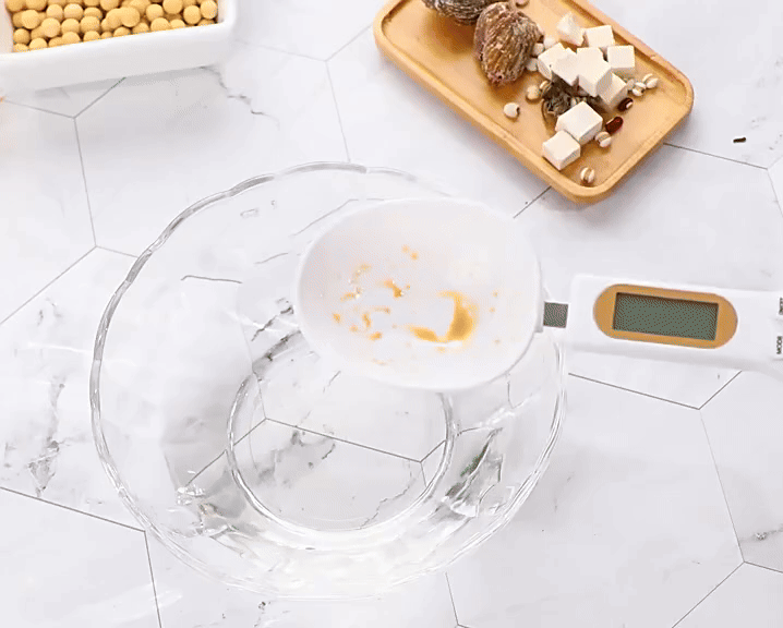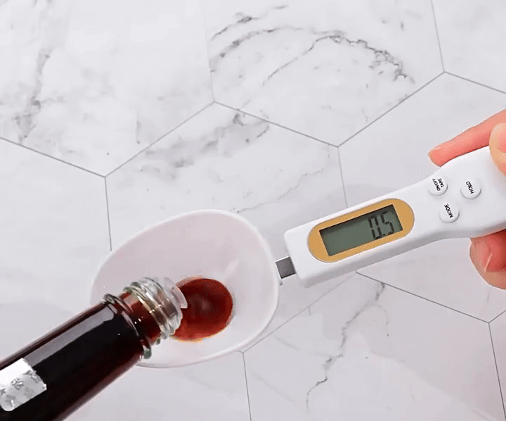 Einfach einschalten, Zutat in den Löffel geben und das Gewicht direkt auf dem Display ablesen – präzise und sofort.